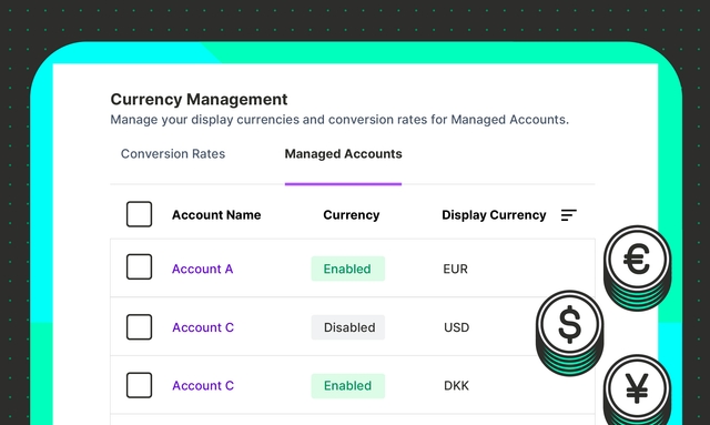 Import custom exchange rates and set currencies for managed accounts.