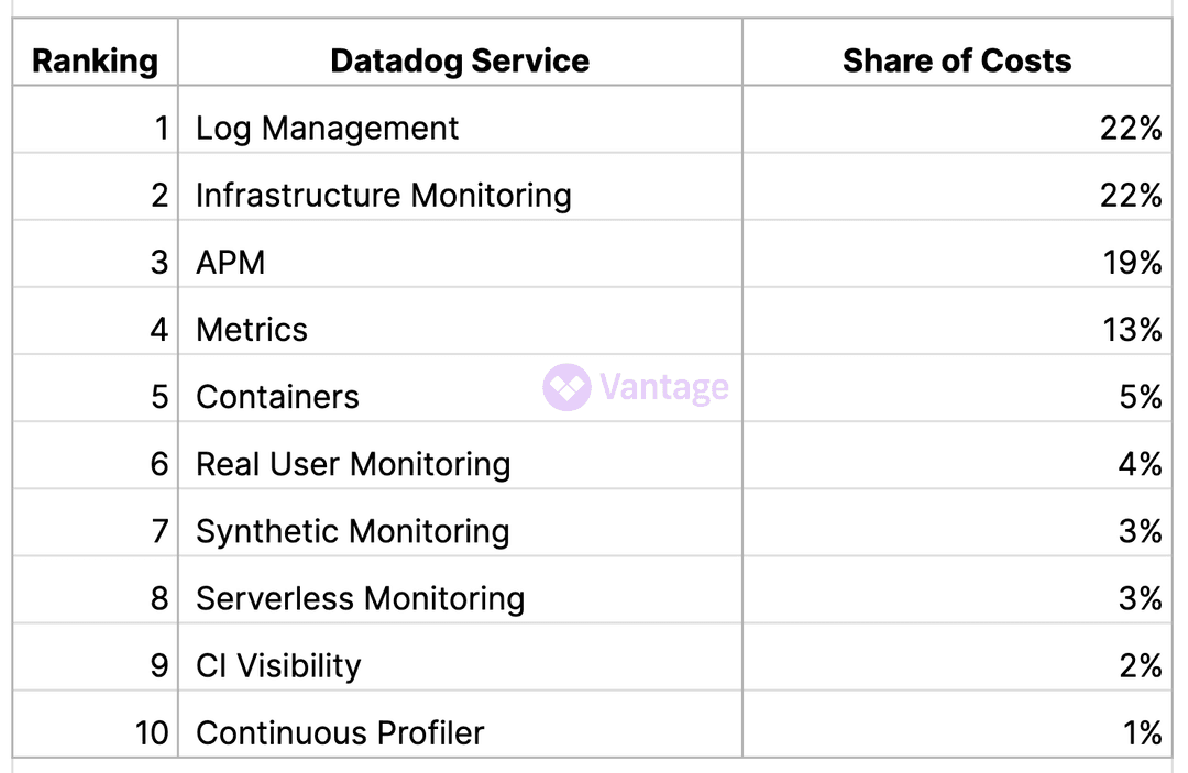 Containers and Serverless Monitoring increased their joint percentage of Datadog spending to 8%, up from last quarter. This growth reflects the growing trend toward containerization and serverless architectures.