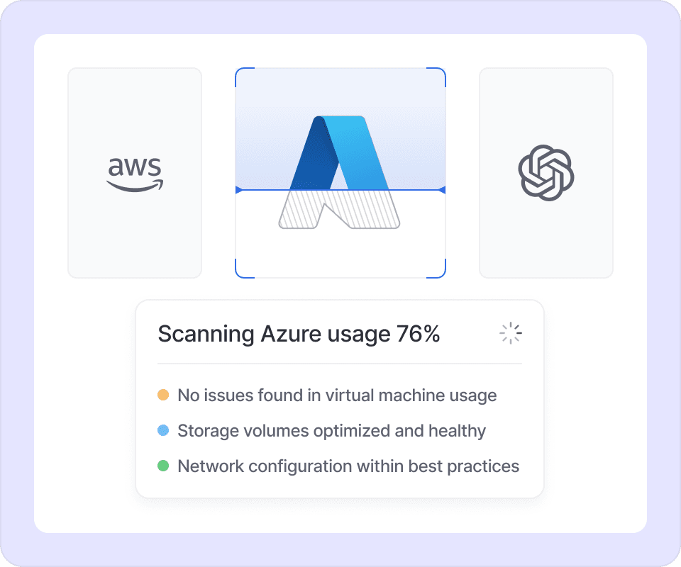 Vantage will scan your environment across 20+ different providers for cost savings opportunities. A full health check will be provided with everything that was found and how to fix it.