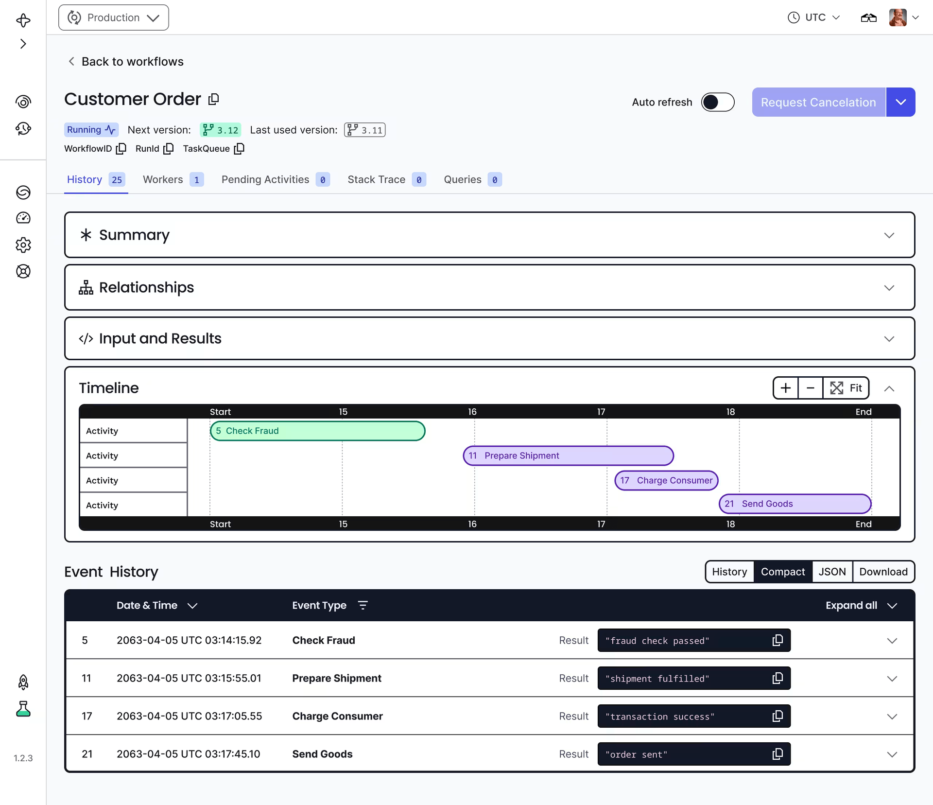 Temporal offers a detailed user interface with the entire hierarchical Workflow history and the ability to scope debugging. This was a key advantage we recognized, as it also maintains a comprehensive job history and state tracking. Jobs are stateless, pass in input and get an output at the end; complexity of processing is contained in the Workflow rather than being an application state.