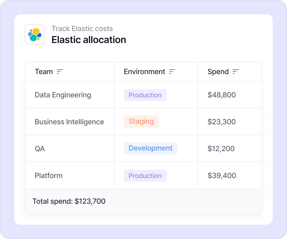 Track, analyze, and allocate Elastic costs alongside your full tech stack