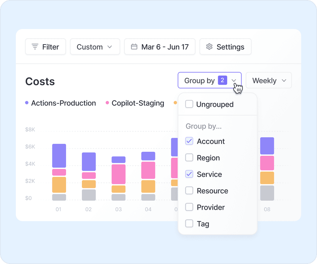 Bring GitHub Actions, Copilot, and more into the same platform as AWS, Azure, GCP, and 20+ other providers. Vantage gives you a complete picture of your cloud spend, across infrastructure, CI/CD, and cloud.