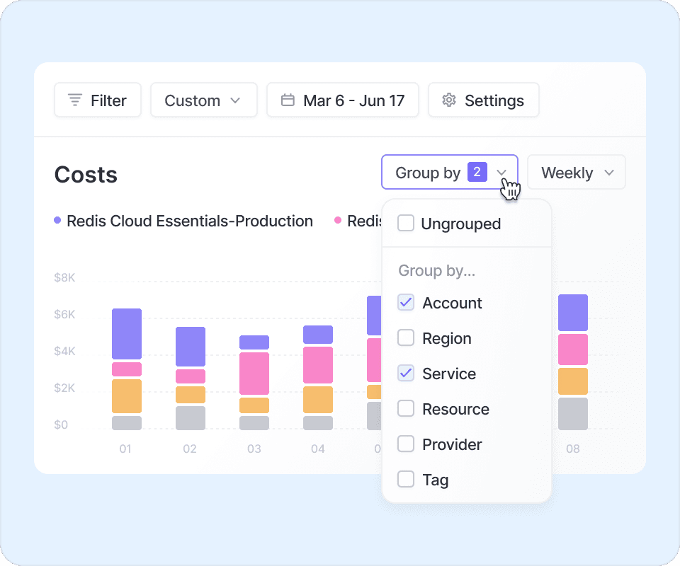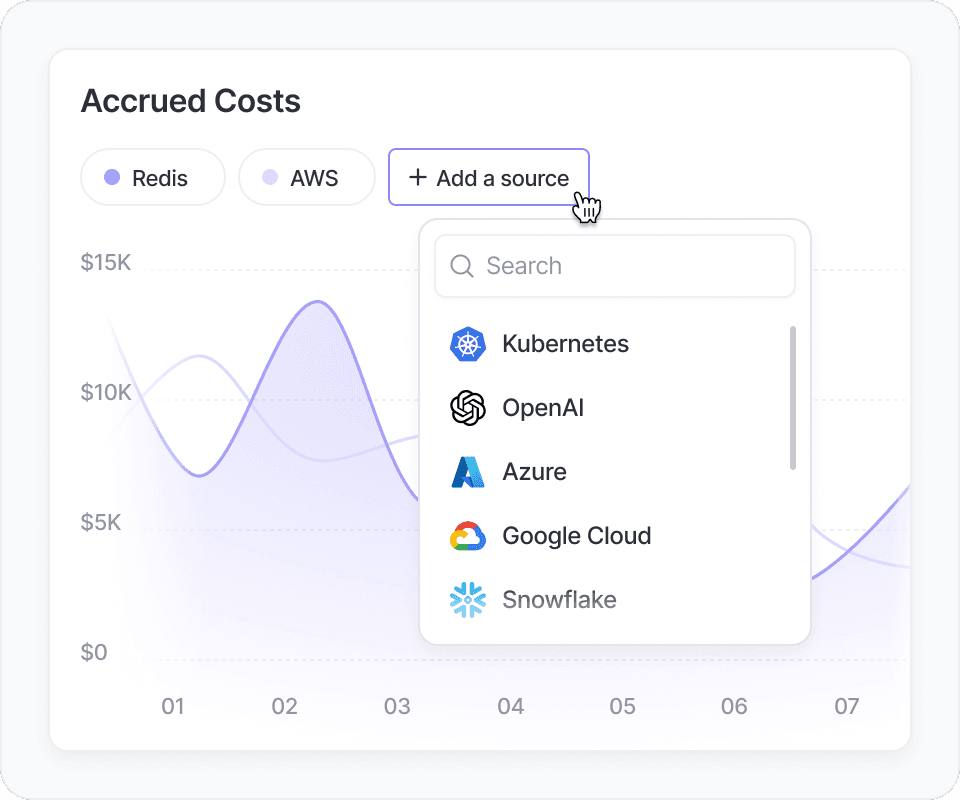 Understand Redis costs alongside 20+ native integrations including AWS, Anthropic, Datadog, for full cost allocation.